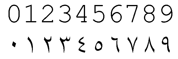 onder = de echte arabische cijfers (die de arabieren de ‘Indische’ noemen. Terecht.)